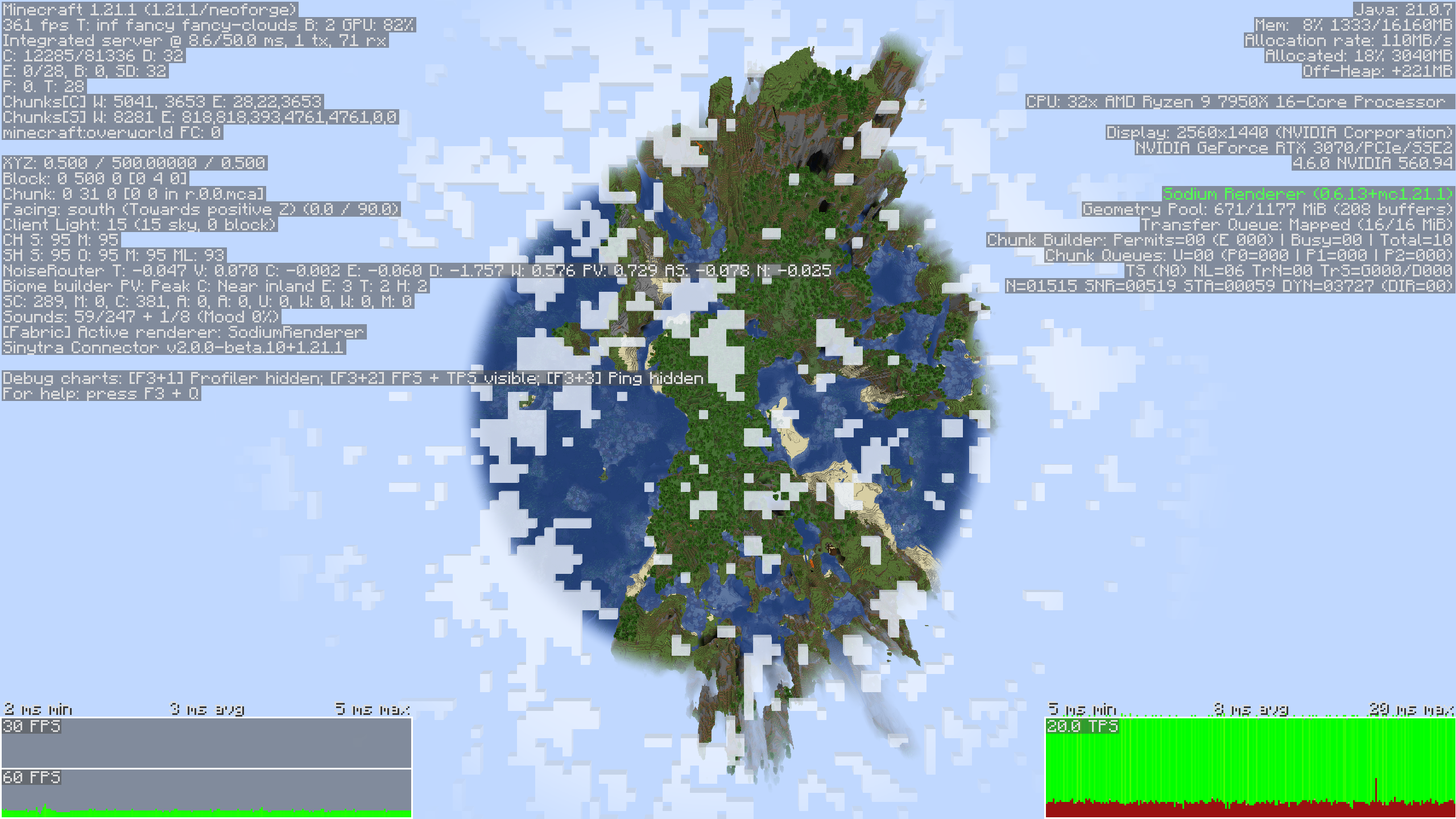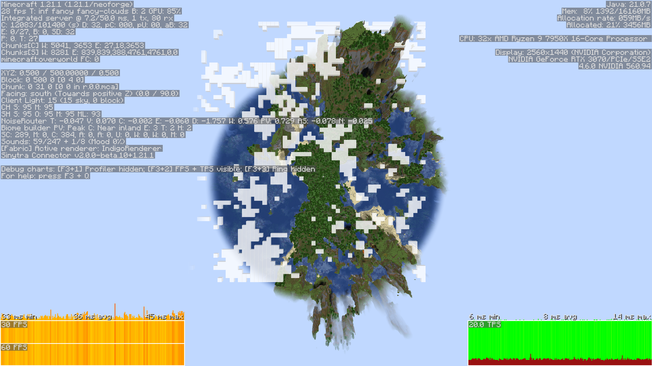 - Render distance & Simulation Distance at 32 chunks